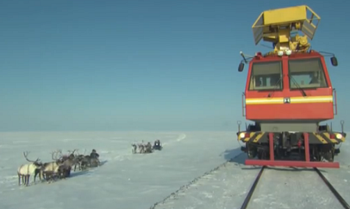 Die Halbinsel Jamal liegt im Nordwesten Sibiriens und ragt weit in das Polarmeer hinein - eine karge Heimat für Nomaden und Rentiere. Seit 2011 durchqueren mehrmals pro Woche Züge der Polarbahnlinie die Ödnis der Tundra. | |
