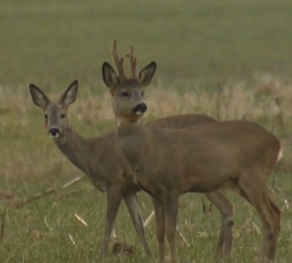 Im Sommer erkennt man Rehe an ihrer glänzenden rotbraunen Fellfärbung, die im Winter graubraun ist. Da Rehe zur Familie der Hirsche gehören, tragen die männlichen Hirsche Geweihe, die mit 30 cm allerdings sehr kurz sind im Vergleich zum Dam- und Rothirsch. Die männlichen Rehe können bis zu 30 kg wiegen. Die Kitze sind gepunktet. | |