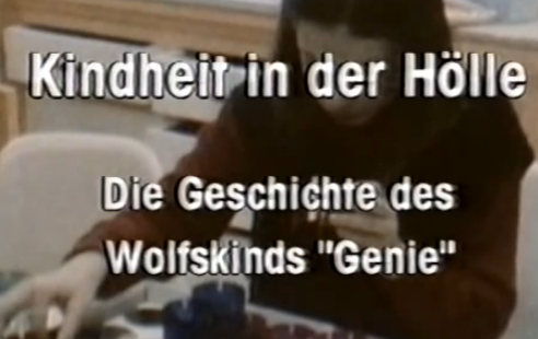Genie wurde 1957 geboren. Als sie zwanzig Monate alt war, wurde sie von ihrem Vater, Clark W., der glaubte, dass sie geistig behindert sei, in eines der Schlafzimmer gesperrt, das sie in den kommenden Jahren nie verlassen hat. Ihre fast blinde, psychisch kranke Mutter, unternahm nichts dagegen. Genie musste eine von ihrem Vater angefertigte Zwangsjacke tragen und wurde bei Tag an ihren Klostuhl und bei Nacht an ihr Gitterbett gefesselt. | |