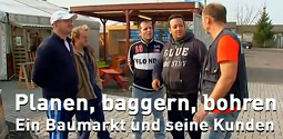 Der eine will eine Eisbude aufstellen, der andere seinen Teich vergrößern, die dritte braucht einen 50m langen Schlauch -- im Baumarkt ist Hochkonjunktur. Sieh hier eine spannende Doku, wie man sie live wohlmöglich nie miterleben würde. | |