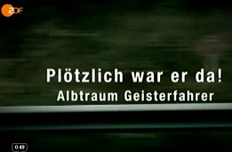 Die "37 Grad"-Sendung rekonstruiert mit Opfern, Verursachern und deren Angehörigen, mit der Polizei und Zeugen Fälle von Geisterfahrten, sucht nach den Ursachen für diese unheimlichen Falschfahrten und zeigt die Folgen für die Betroffenen auf. Laut ADAC läuft nicht nur jeder Gefahr, auf der Autobahn einem Falschfahrer zu begegnen, vielmehr kann jeder Autofahrer auch selbst zum Falschfahrer werden. Der Film stellt auch Fragen an die eigene Fahrtüchtigkeit und regt zur Achtsamkeit beim Autofahren an. | |